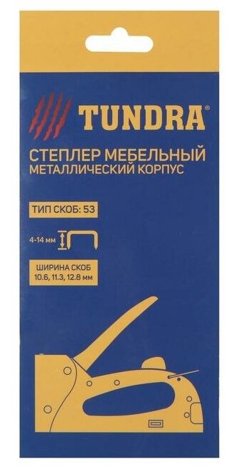 Степлер мебельный тундра, металлический корпус, тип скоб 53, 4 - 14 мм(В наборе1шт.)