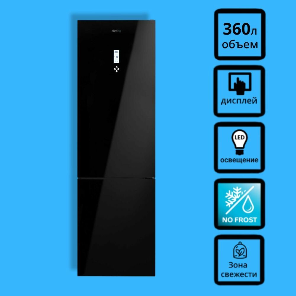 Холодильник двухкамерный Korting KNFC 61868 GN (черный)