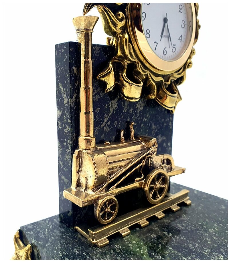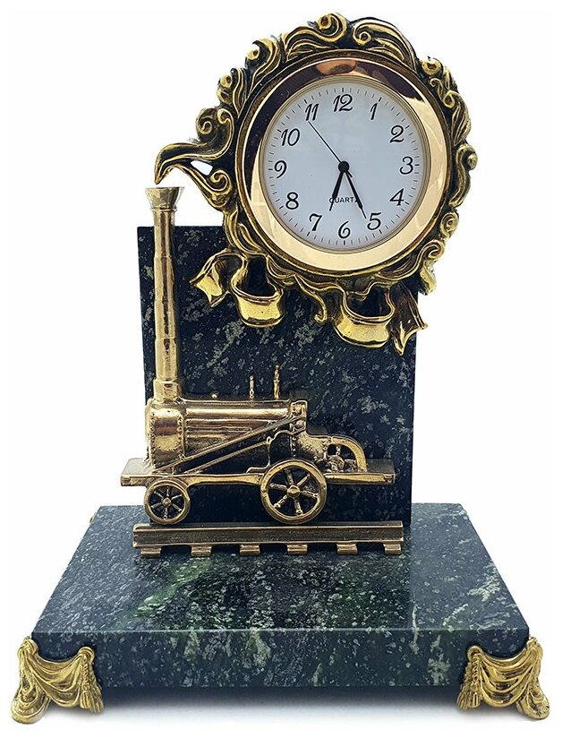 Настольные часы "Паровоз" из бронзы и змеевика (16 см) интересное:
