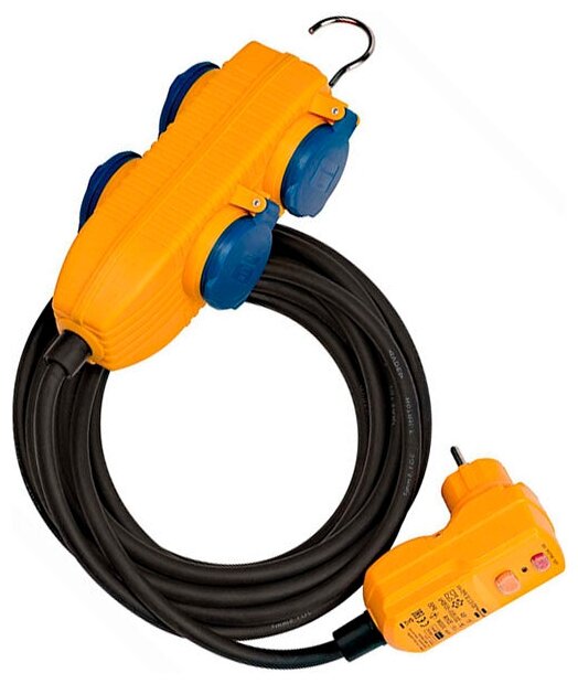 Удлинитель с УЗО Brennenstuhl (4 розетки, 5 м, жёлтый, IP54), 1168720010 интересное: