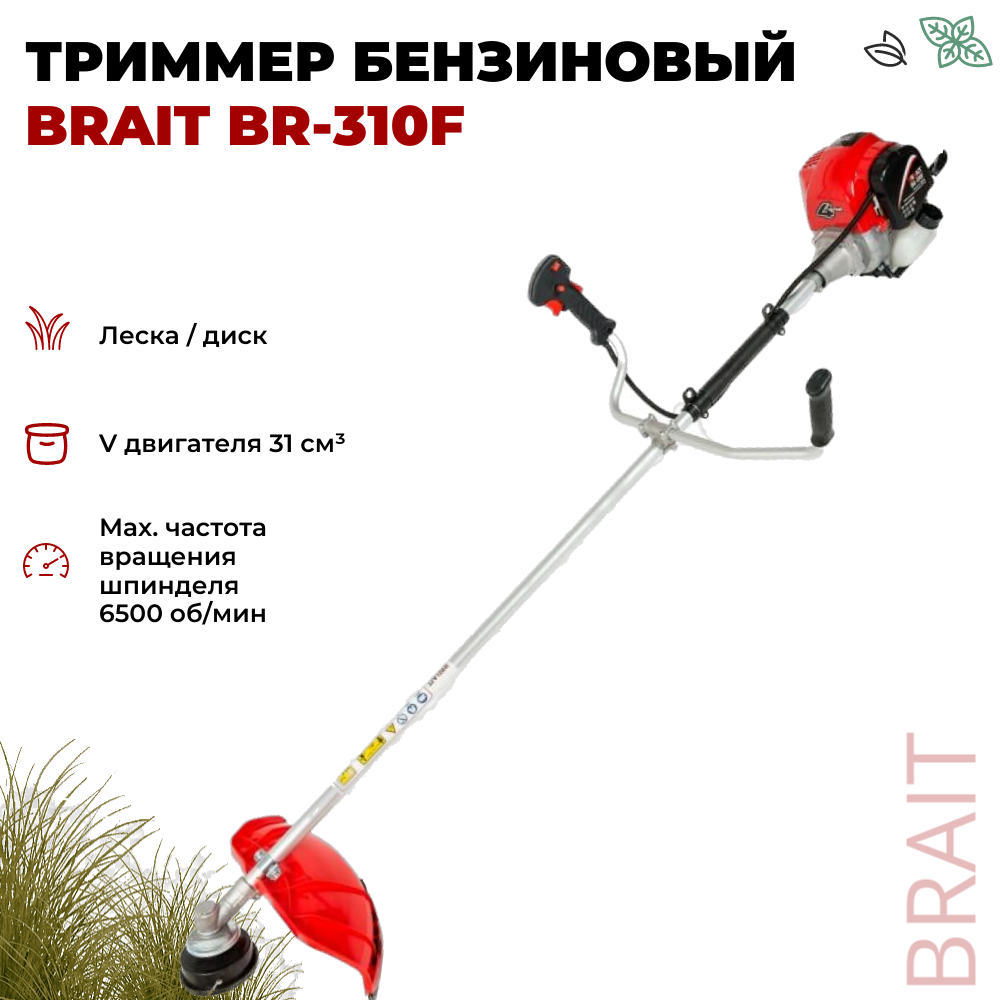 Триммер бензиновый Brait BR-310F 31 см3, 850 Вт, 4-х тактный, нож, леска