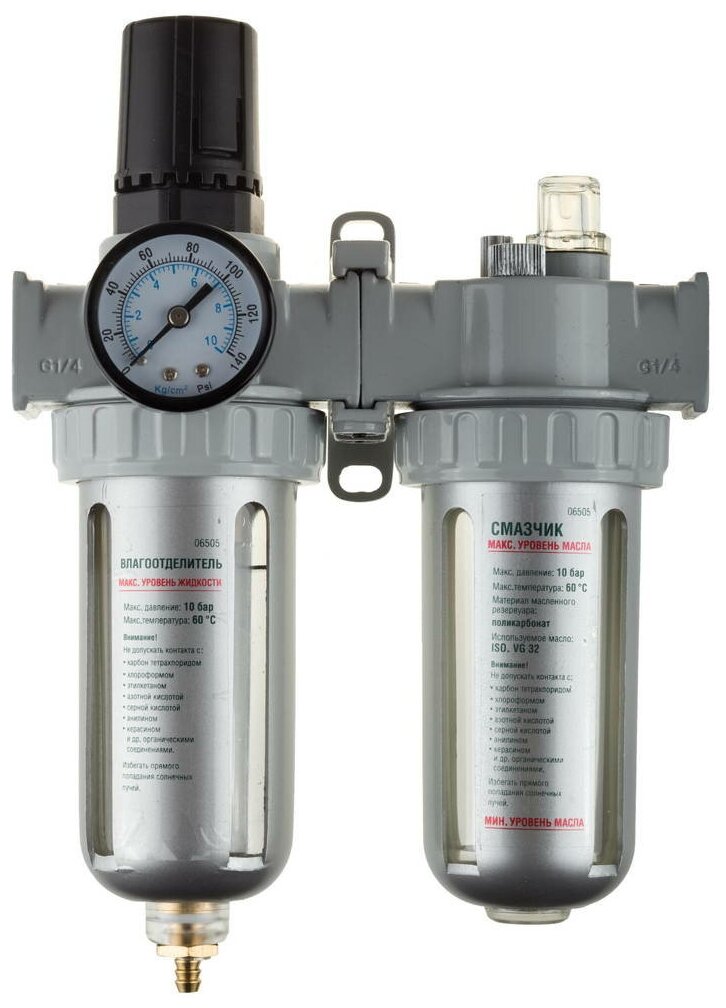 Набор аксессуаров KRAFTOOL "INDUSTRIE QUALITAT" для пневмосистем: манометр, влагоотделитель, смазчик(06505)