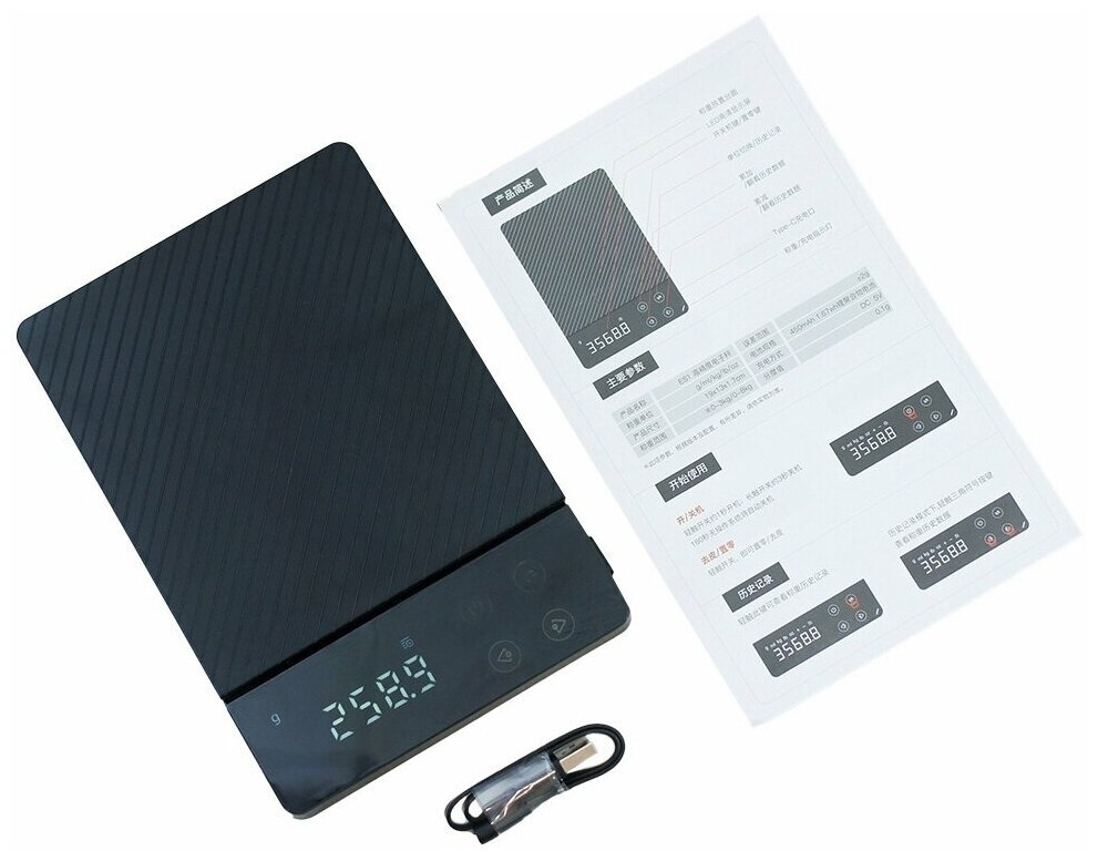 Электронные весы для кофе с таймером 3kg/0.1, черные