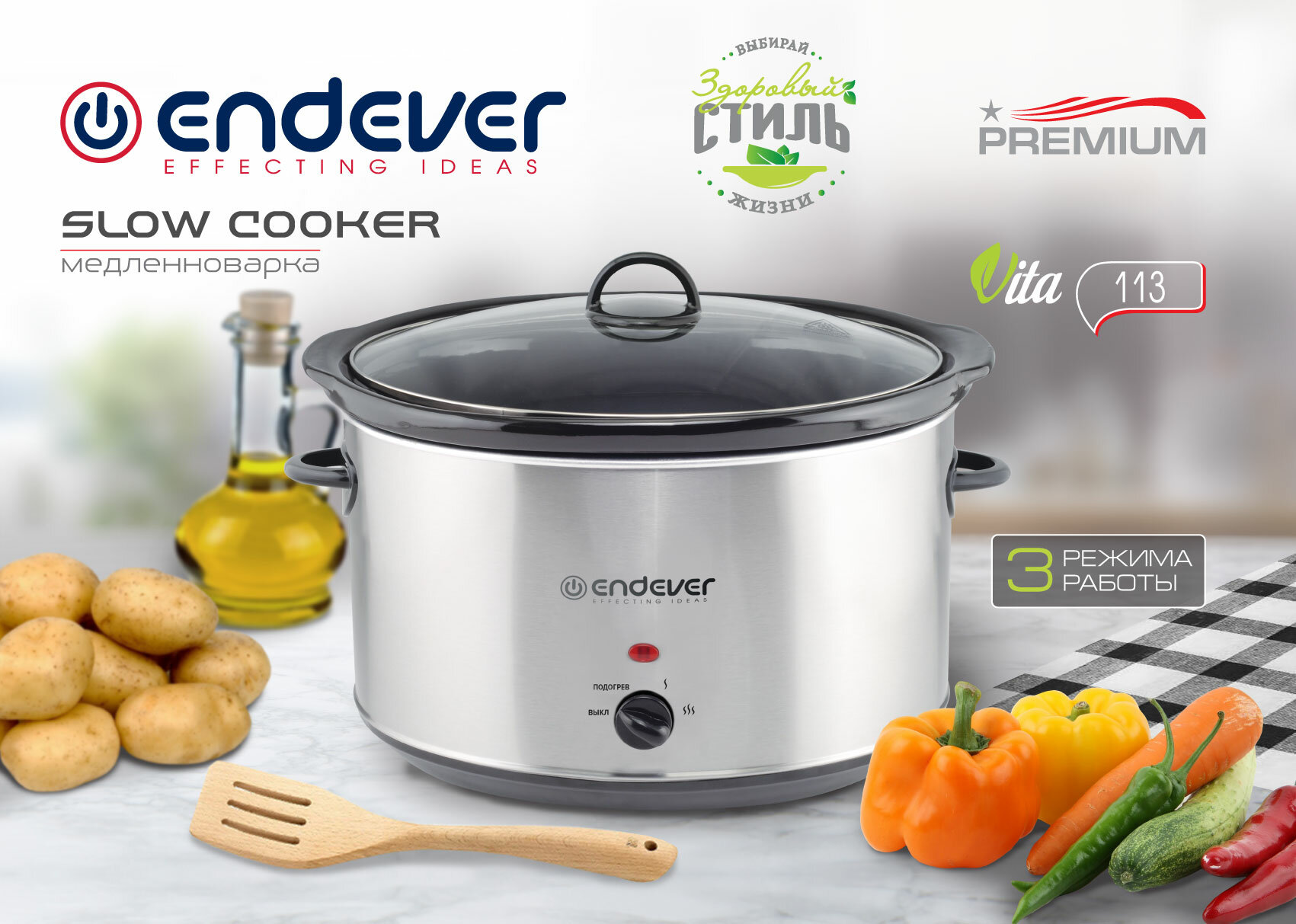 ENDEVER 90226 Медленноварка Endever Vita-113 серебристый