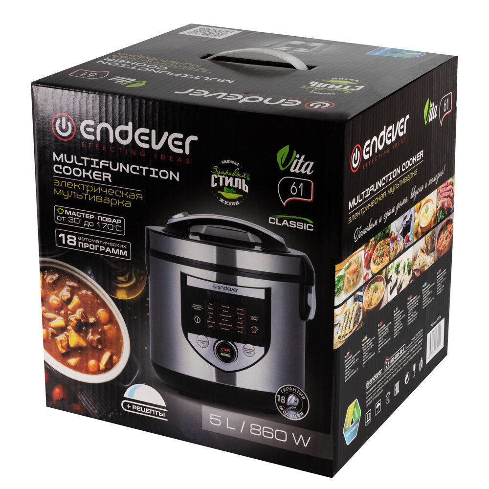 Мультиварка ENDEVER VITA-61, с антипригарной чашей на 5 литров, 18 автоматических программ + Мастер-повар