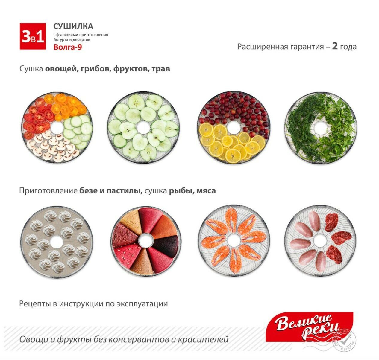 Сушилка для овощей и фруктов, грибов, мяса, рыбы Великие Реки Волга-9