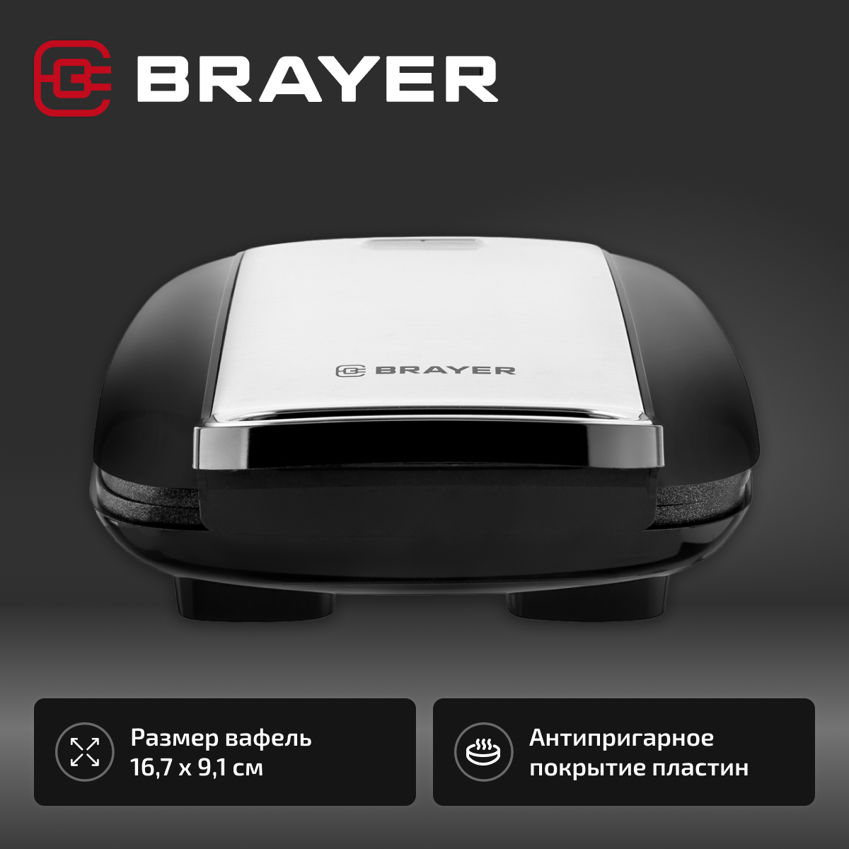 BRAYER BR2301 Вафельница, 1200 Вт, белг.вафли,панель 16,7 9,1 см, антиприг.покр, защита от перегр