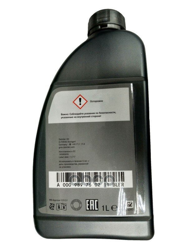 Моторное масло Mercedes-Вenz MB 229.51 A0009899701AAA4 5 литров а привезли ДРУГОЙ А000989690613ABDE |