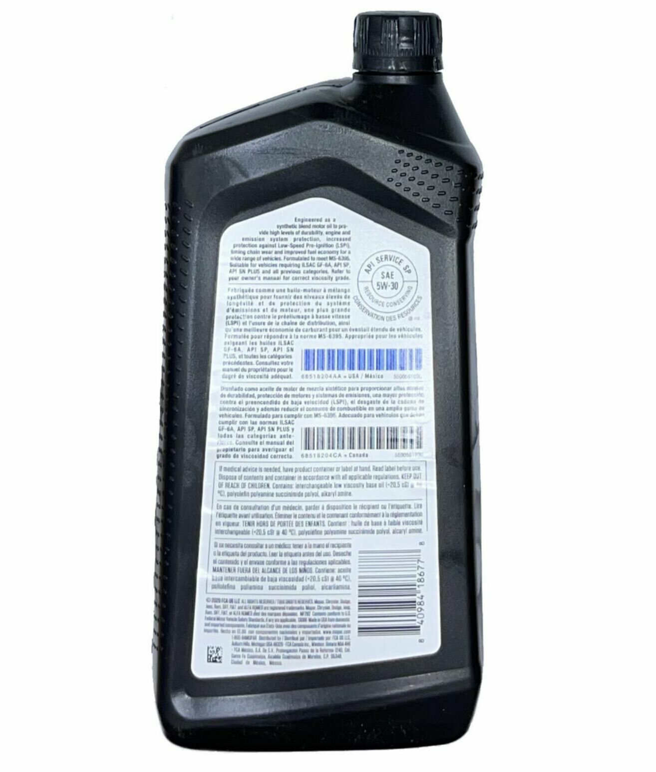 Chrysler Mopar SP 5W-30 MaxPro (Оман), масло моторное 1л + лейка, масло для автомобиля 68218920UB