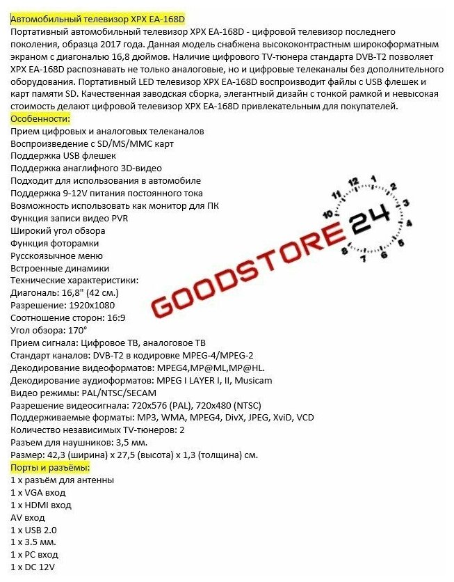 Автомобильный телевизор XPX EA-168D. 16.8" интересное: