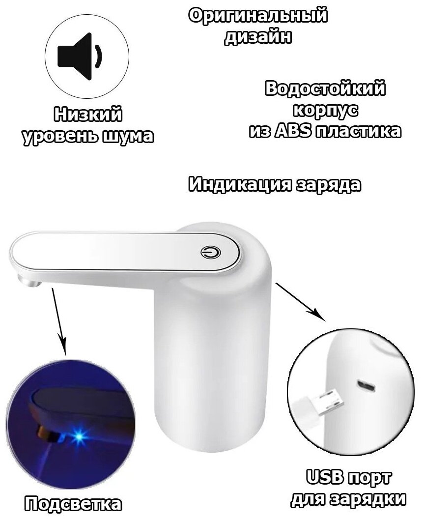 Помпа для воды электрическая с Подсветкой / Насос аккумуляторный для бутилированной воды USB / Кулер интересное: