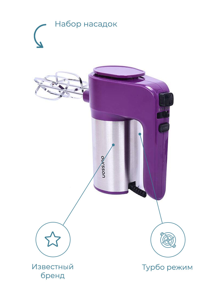 Купить Миксер Oursson HM4001/SP, серебристый/фиолетовый