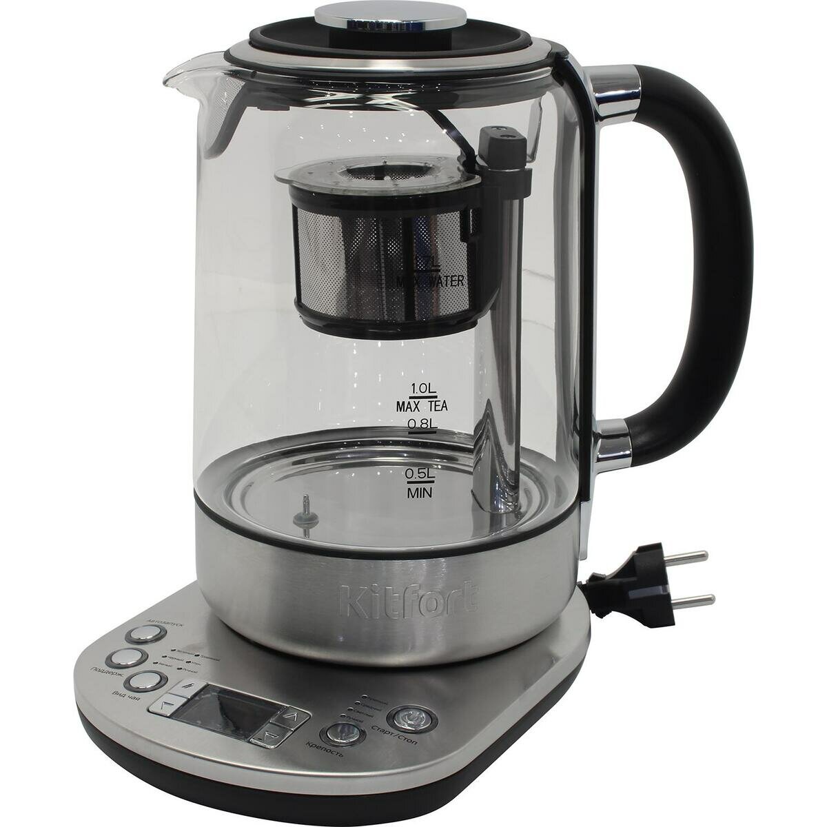 Чайник электрический Kitfort KT-6116 нержавеющая сталь/черный, стекло