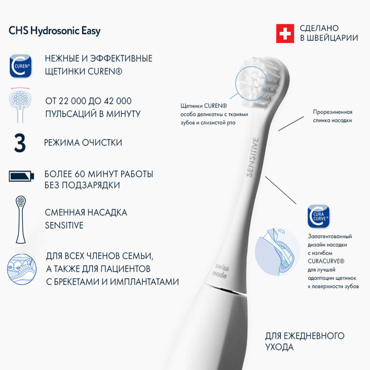 Звуковая зубная щетка CHS Hydrosonic Easy в наборе, Curaprox