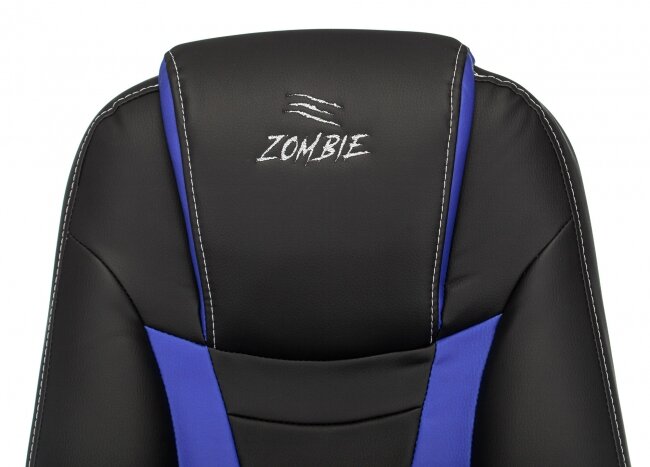 Кресло компьютерное игровое Zombie, экокожа, черное, синее, крестовина пластик - Кресло геймерское, с подголовником