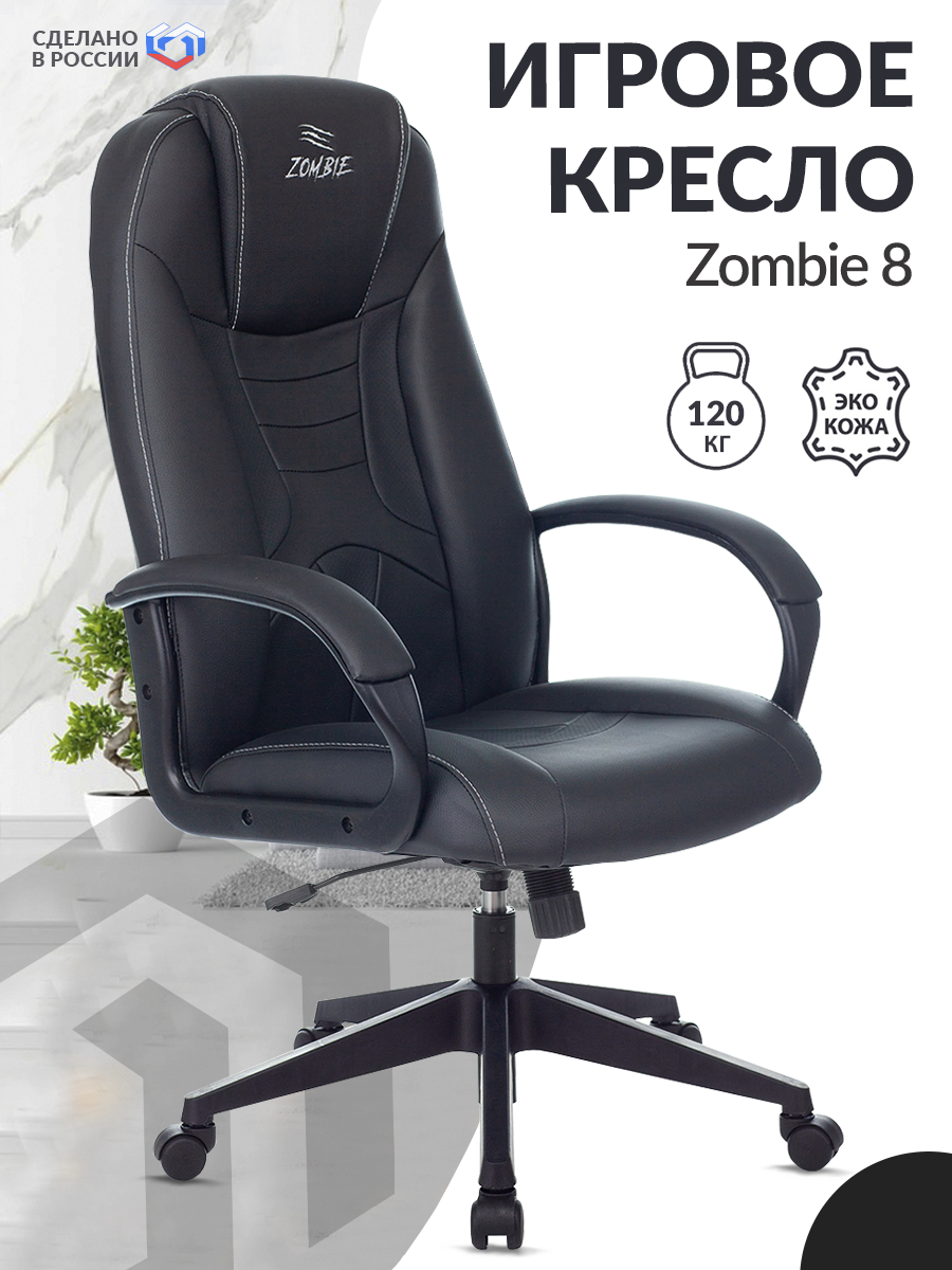 Купить Кресло игровое ZOMBIE 8, на колесиках, эко.кожа, черный [zombie 8 black]