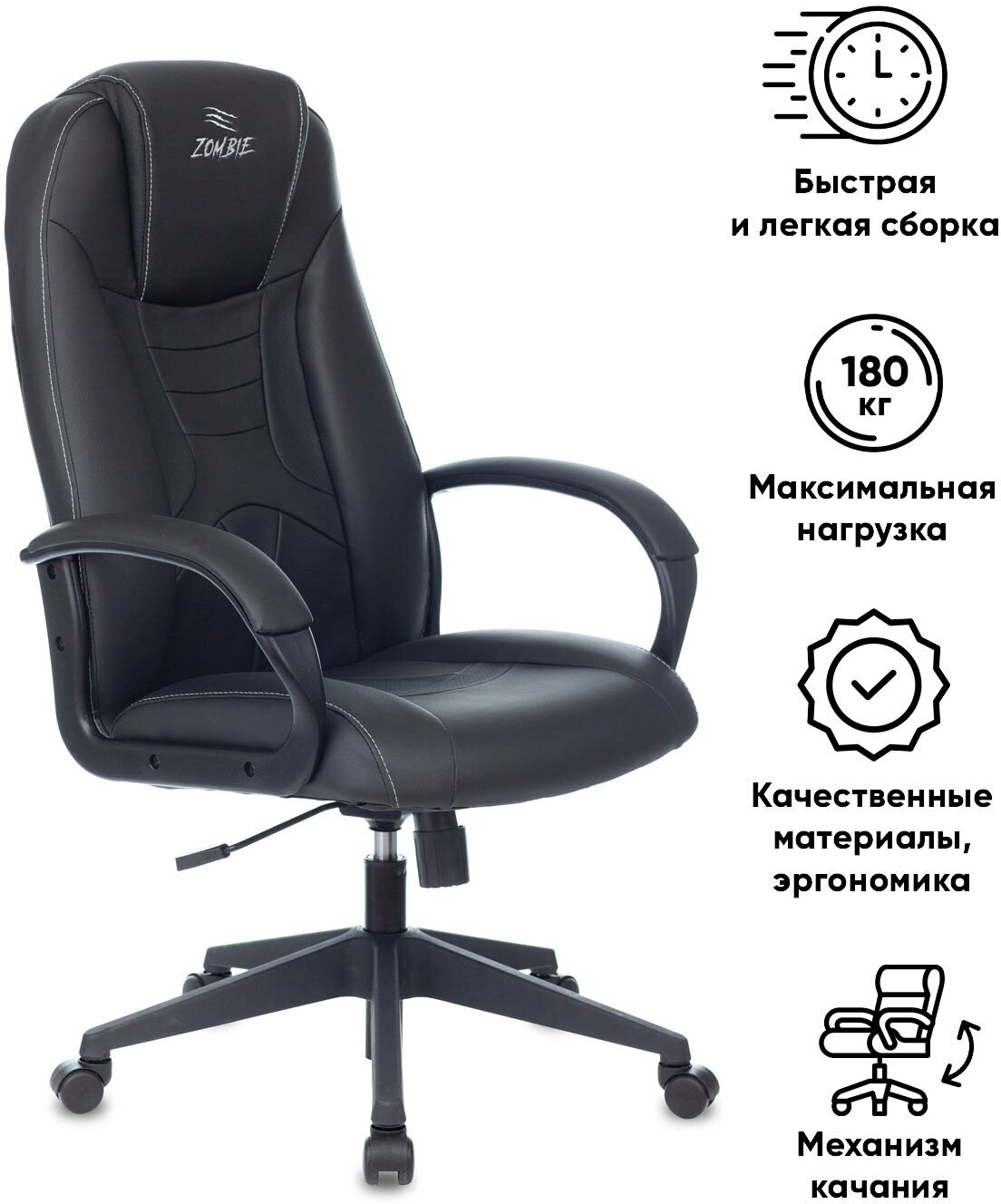 Кресло компьютерное ZOMBIE 8, экокожа, черное, 1583069