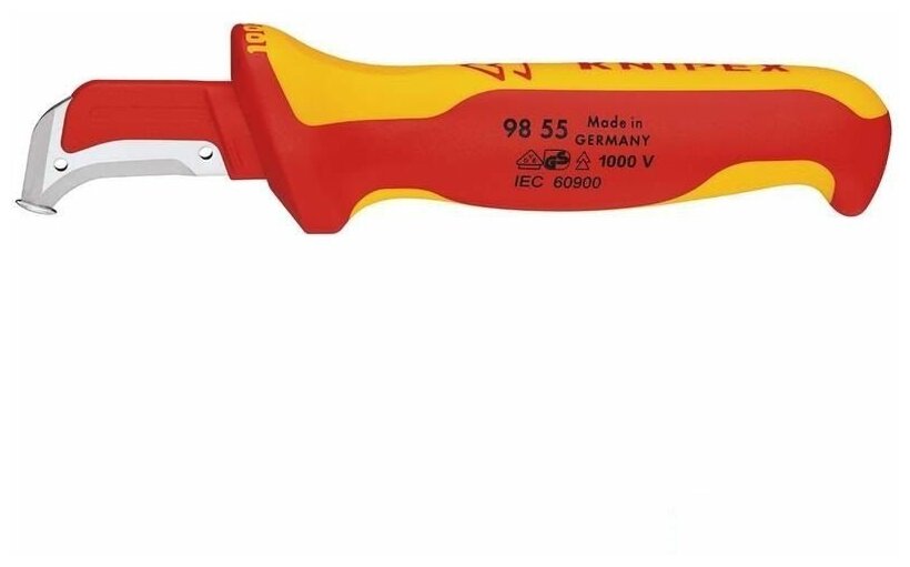 Нож KNIPEX для кабеля VDE с "пяткой", 180 мм, нерж. хирургическая сталь, 2К диэлектрическая ручка KN-9855