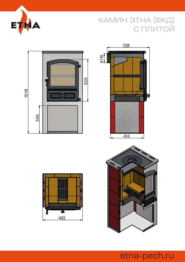 Печь-камин этна (БКД) с плитой Антрацит высокая 115мм интересное: