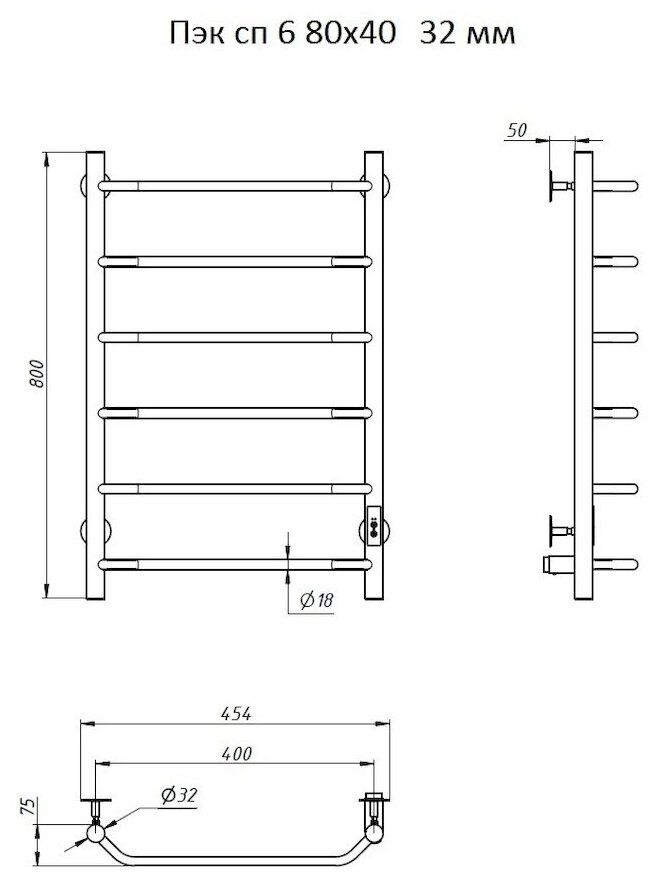 Полотенцесушитель электрический Тругор Пэк сп 6 80х40 32 мм универсальный