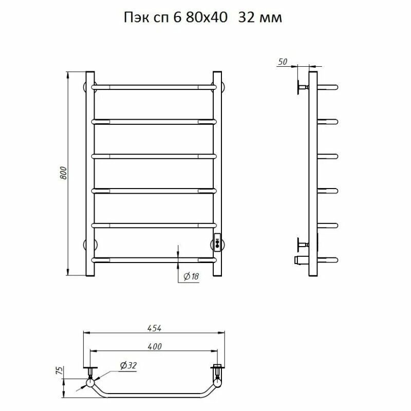 Полотенцесушитель электрический Тругор Пэк сп 6 80х40 32 мм универсальный