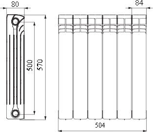 Радиатор биметаллический 6 секционный, STOUT ALPHA 500 / 504 SRB-2310-050006