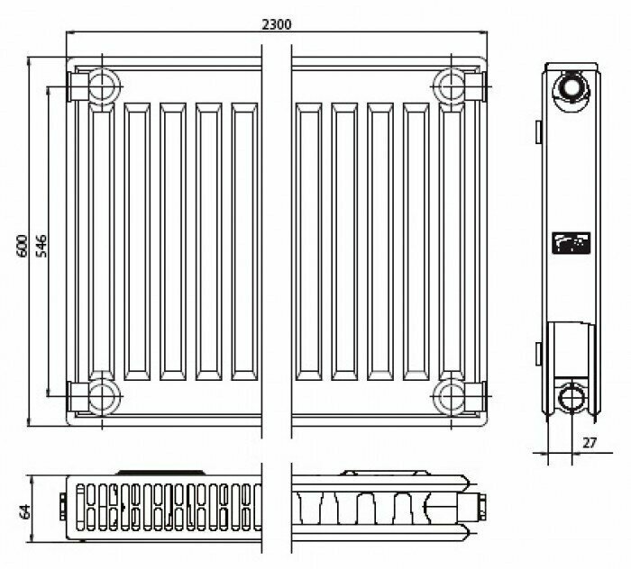 Радиатор панельный KERMI Profil-V_FTV тип 12 высота 600 ширина 600 профильный, нижнее подключение 3/4"