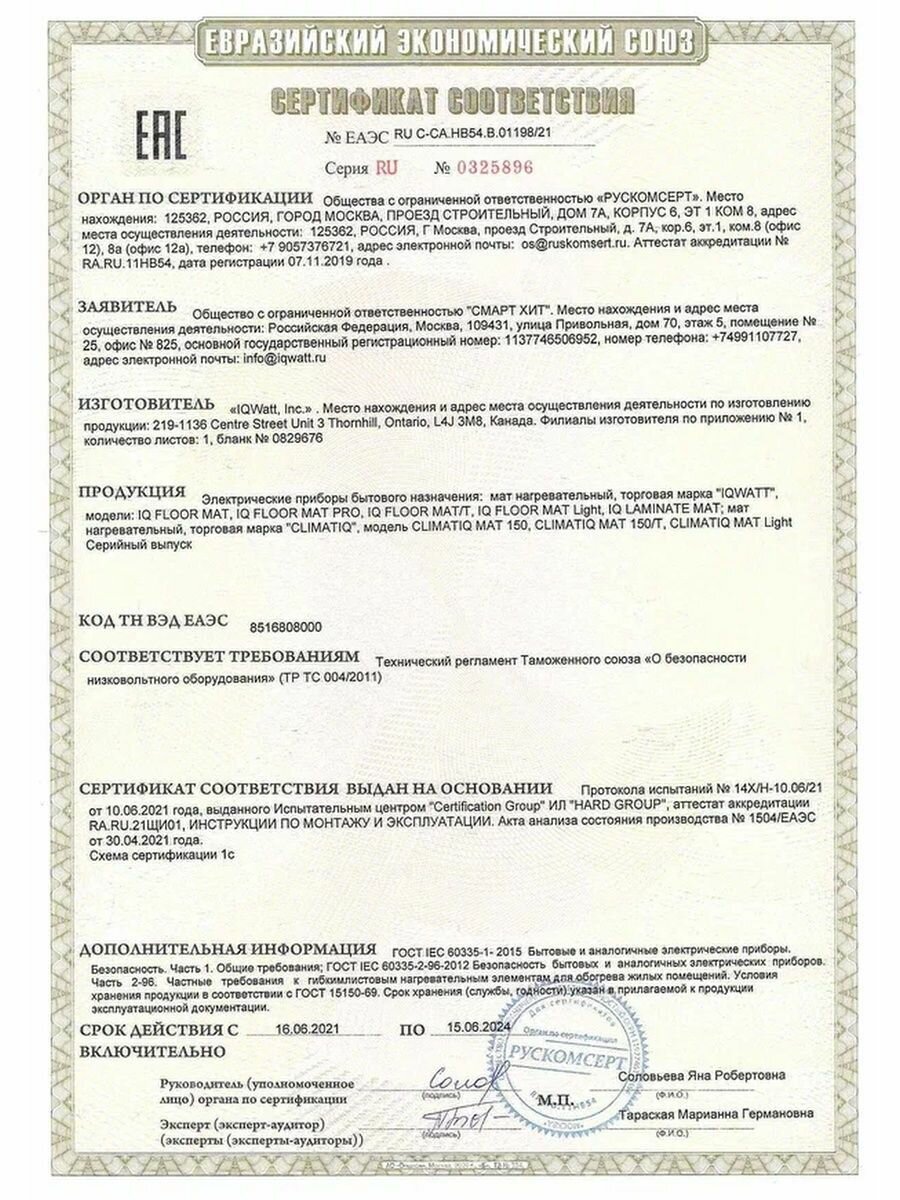 | Дополнительная информация | Комплектация: нагревательный мат; гофрированная трубка; пластиковая заглушка; инструкция по монтажу и эксплуатации. |