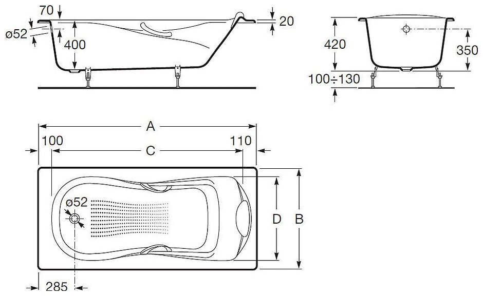 | Дополнительная информация | с отверстиями для ручек; ножки, слив-перелив, ручки, подголовник приобретаются отдельно |
