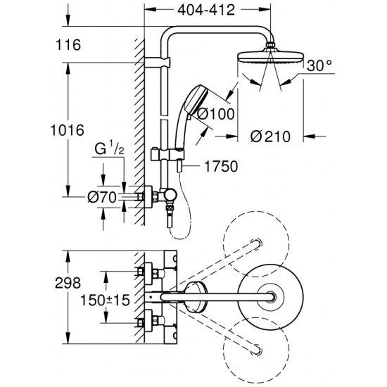 | Отзыв: | Имейте ввиду, что расстояние от тропического душа до головы должно составлять около 20 см., когда будите делать закладные под термостат ( сама стойка статична, т.е. не увеличивается и не удлиняется) |
