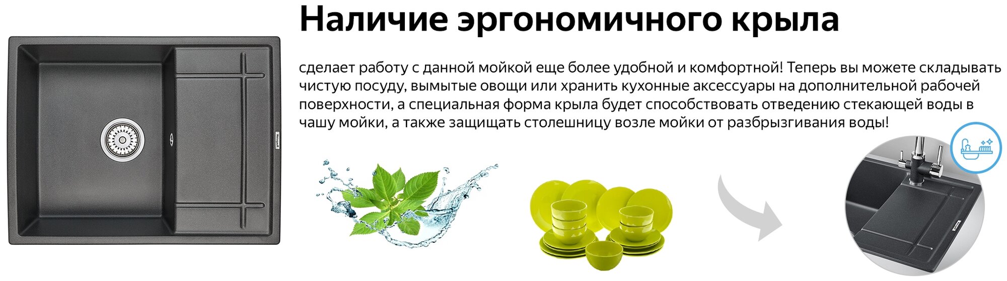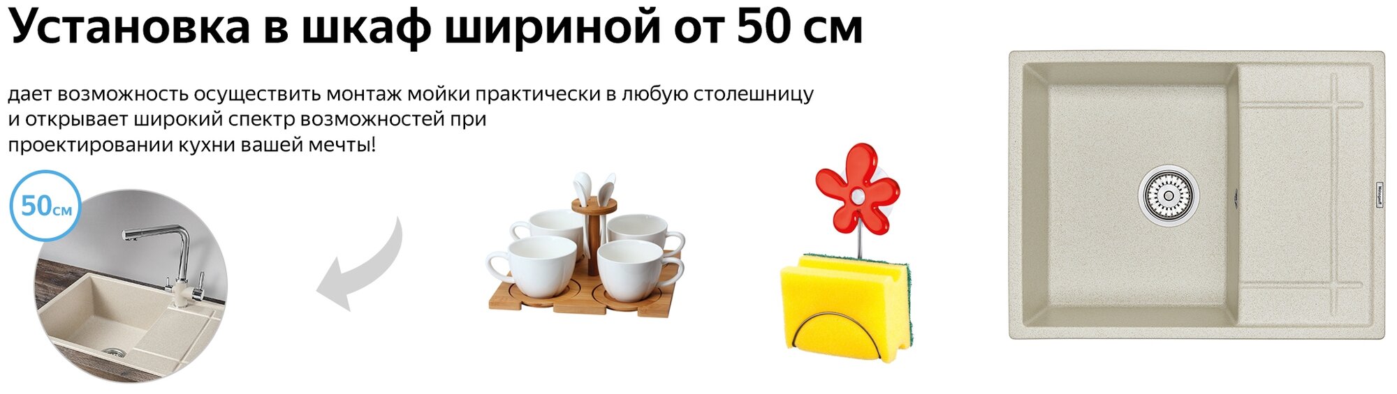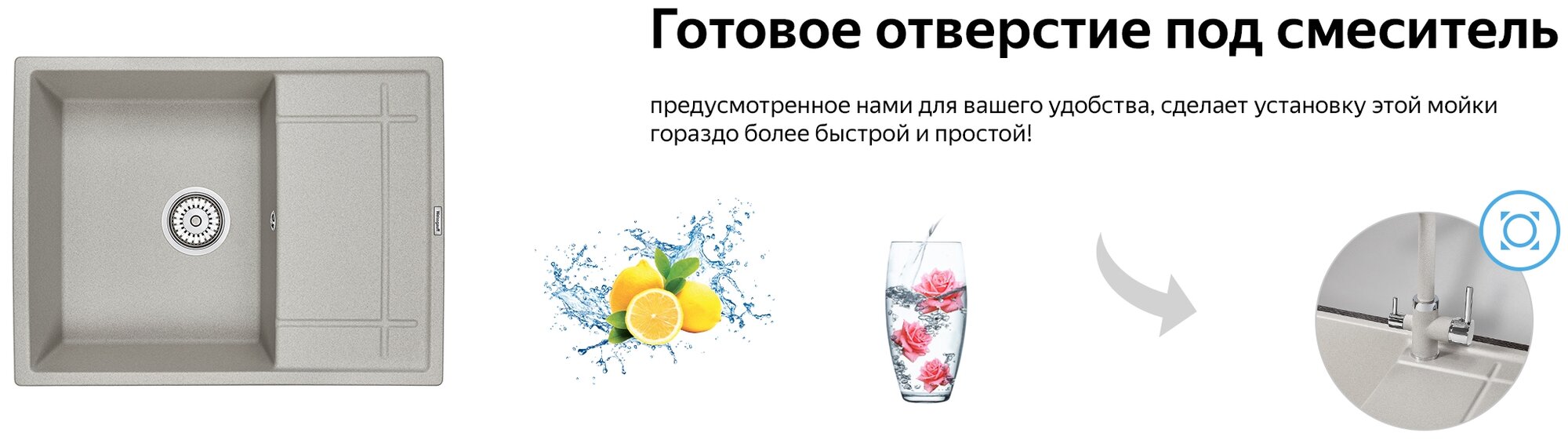 | Минусы: | Любая каменная мойка со временем обрастает микроцарапинами, и эта точно не будет исключением |