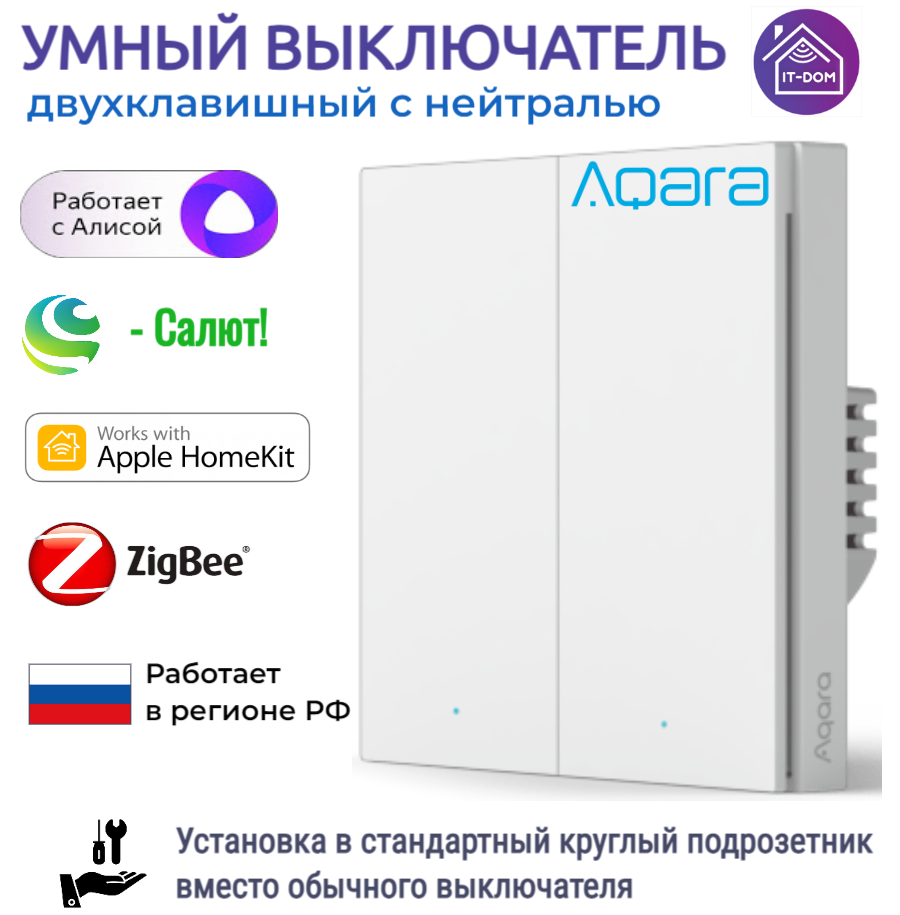 Умный выключатель двухклавишный с нейтралью Aqara H1 WS-EUK04, умный дом, белый
