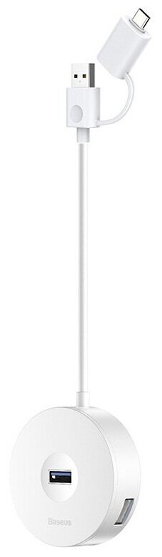 Хаб CAHUB-GB02 Baseus round box HUB adapter Type-C+USB A to USB3.0 1+USB2.0 3 12cm (белый)