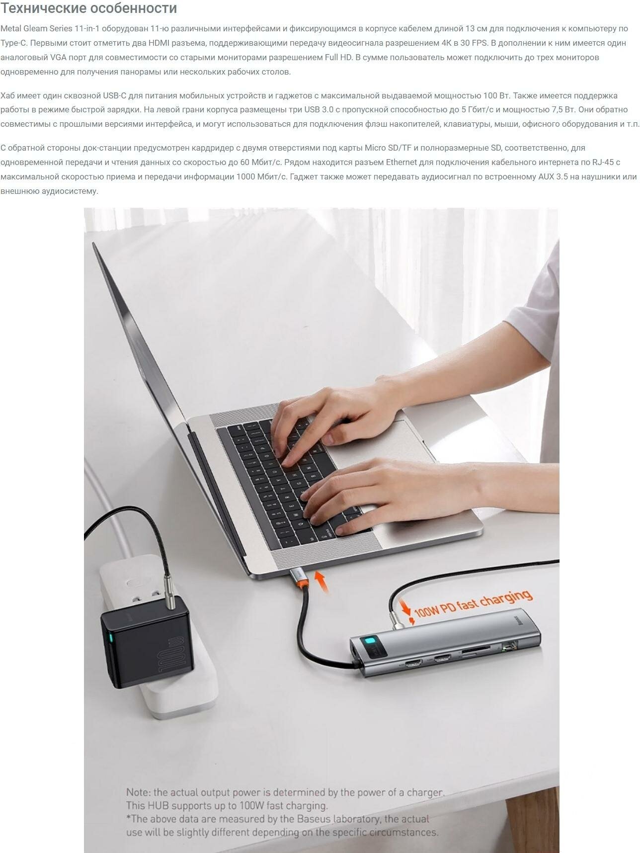 СохранитьХаб Baseus Metal Gleam Series 11-in-1 Multifunctional Type-C Space Gray CAHUB-CT0G интересное: