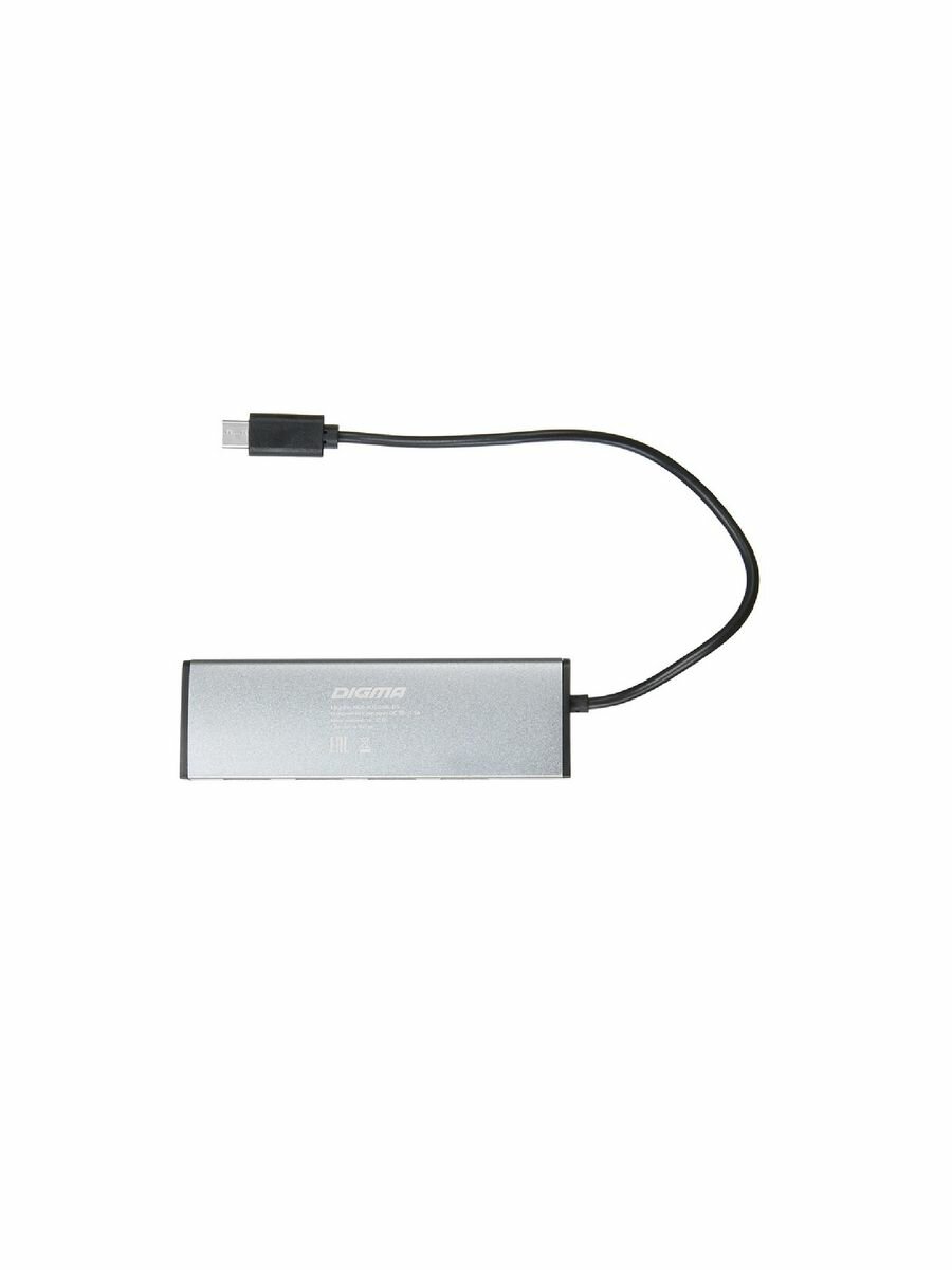 Хаб (разветвитель) Digma HUB-4U2.0-UC-DS, серебристый
