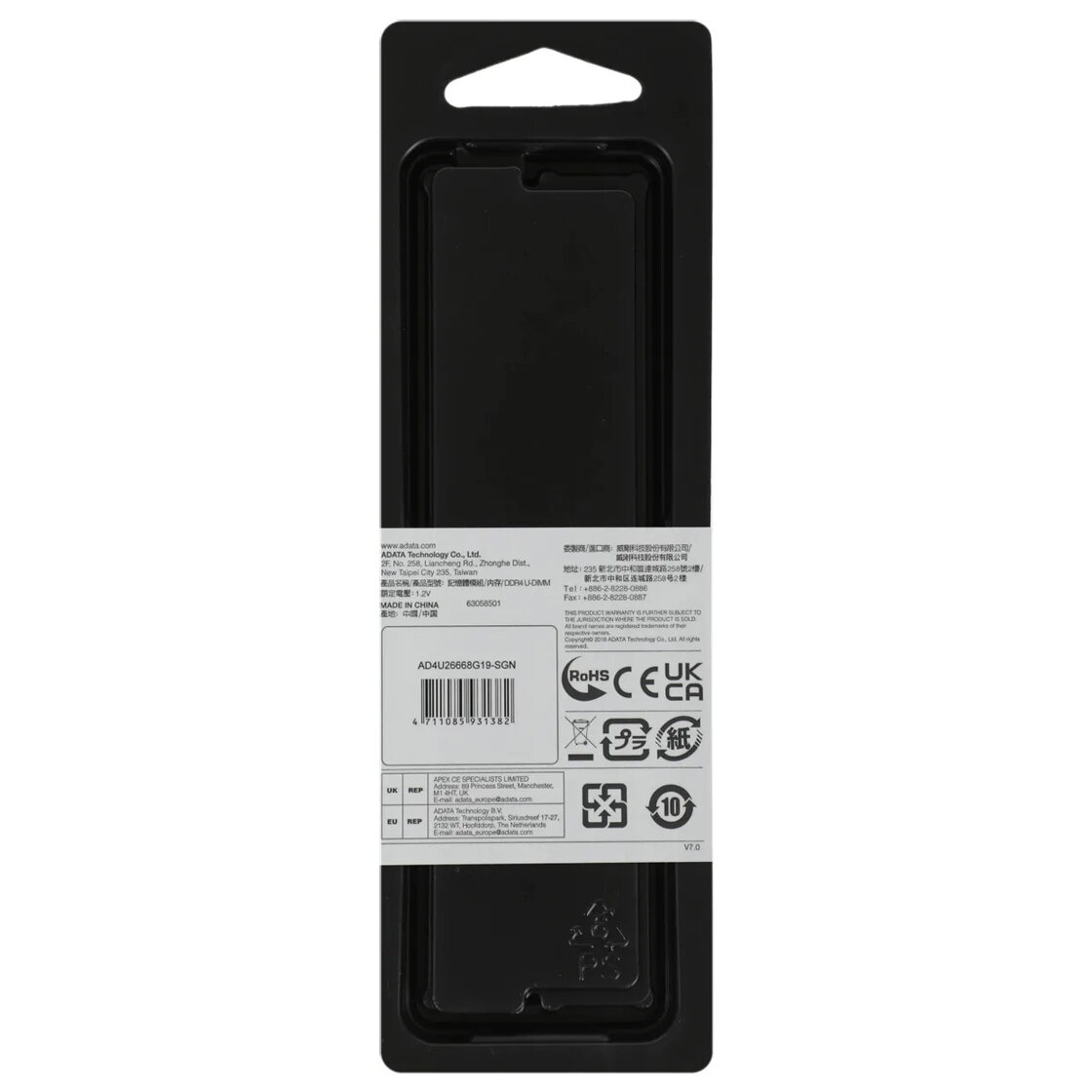 Adata DDR4 8Gb 2666MHz pc-21300 (ad4u26668g19-sgn) Ad4u26668g19-sgn .