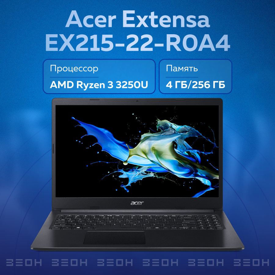 Ноутбук Acer Extensa EX215-22-R0A4 AMD Ryzen 3 3250U/4Gb/256Gb SSD/No ODD/15.6" FHD TN/AMD Radeon Graphics/Cam/WiFi/BT/No OS/Black