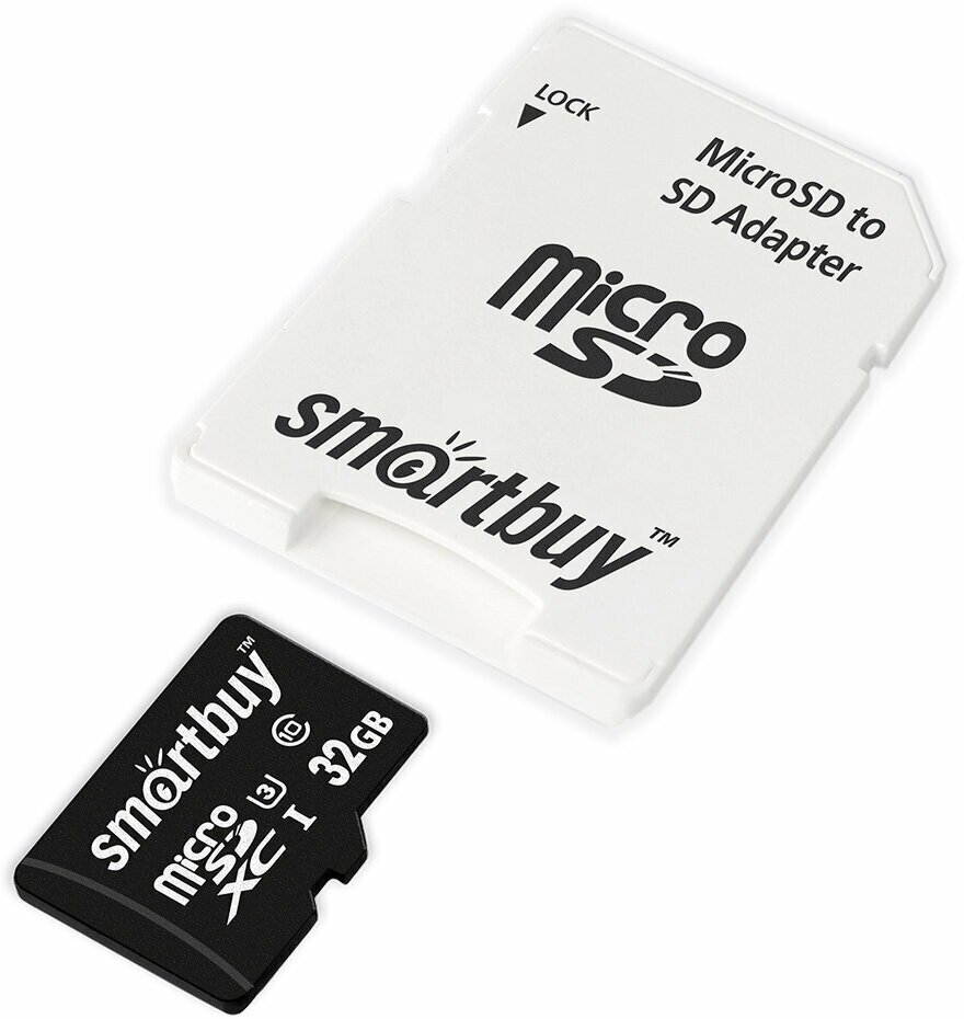 Карта памяти SmartBuy microSDHC 32 ГБ Class 10, UHS-I U3, R/W 90/55 МБ/с, адаптер на SD, 1 шт.