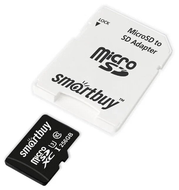 Карта памяти SmartBuy microSDHC 256 ГБ Class 10, UHS-I U3, R/W 90/55 МБ/с, адаптер на SD, 1 шт.