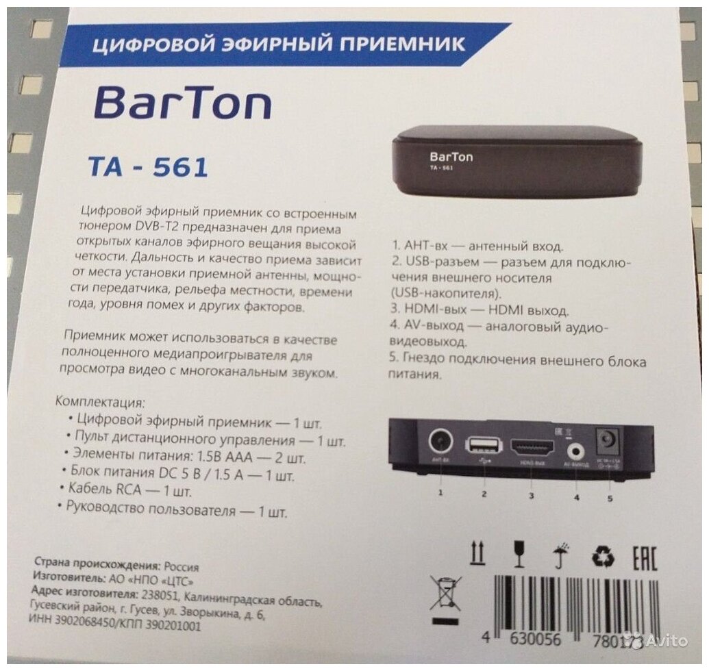 Цифровой эфирный приемник Barton ТА-561
