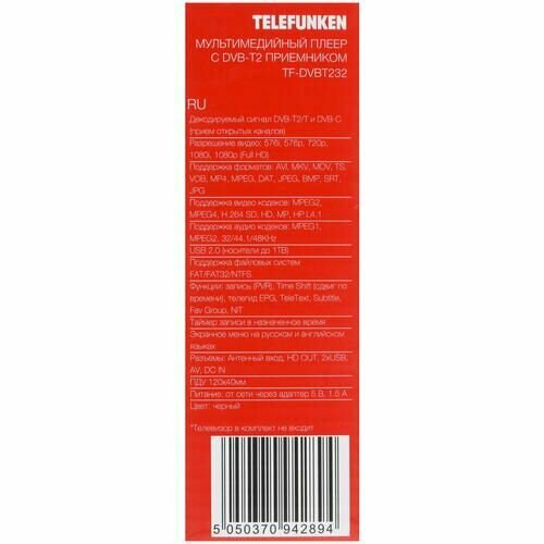TELEFUNKEN Плееры Медиа TF-DVBT232(черный)