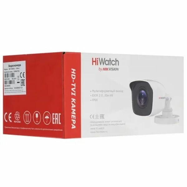 Камера HiWatch DS-T200 B (2.8 mm) 2Мп уличная цилиндрическая HD-TVI камера с EXIR-подсветкой до 20м 1/2.7 CMOS матрица; объектив 3.6мм; угол обзора 8