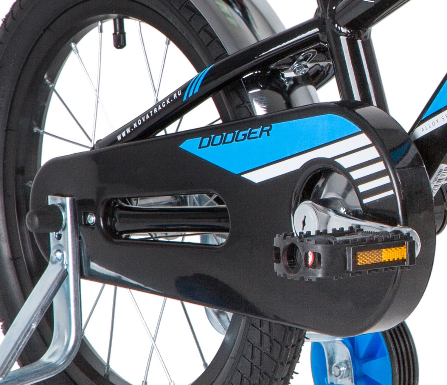 Велосипед NOVATRACK 16" DODGER, черный, алюм, тормоз нож., короткие крылья, полная защита цепи