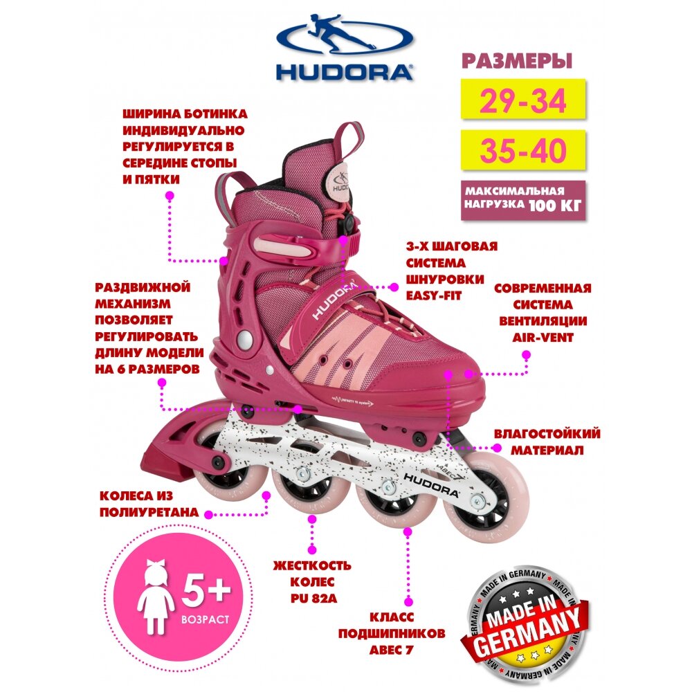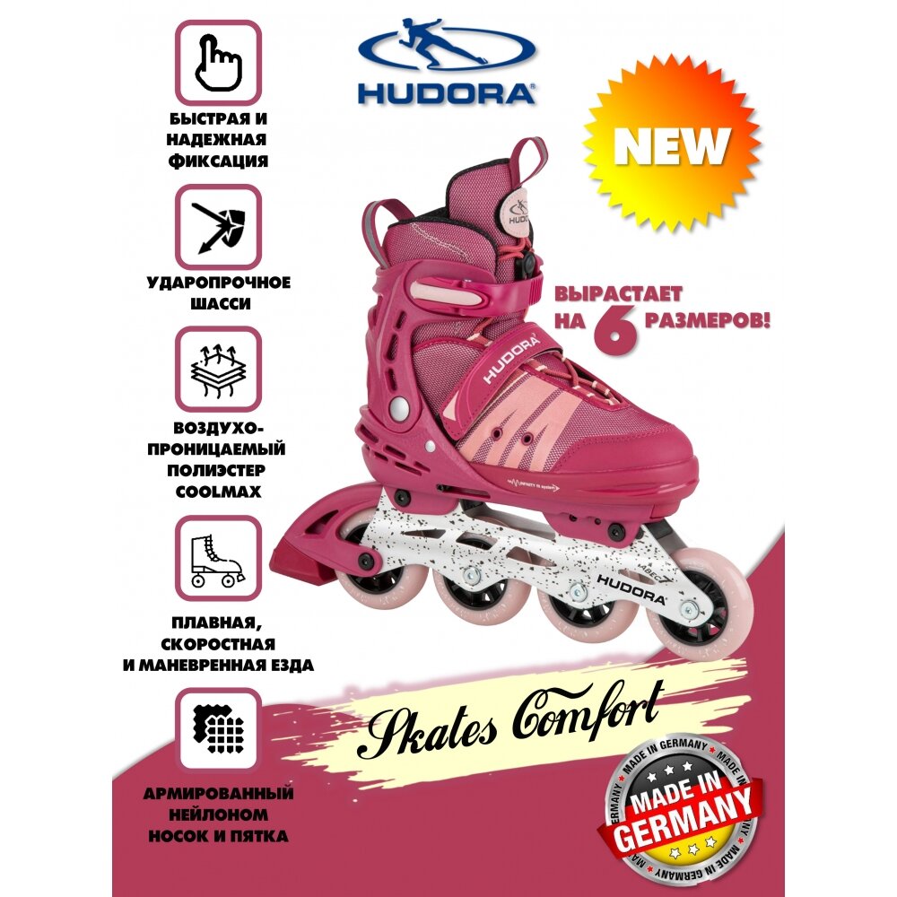 Раздвижные ролики HUDORA inline Skates Comfort, розовые, размер 29-34 интересное: