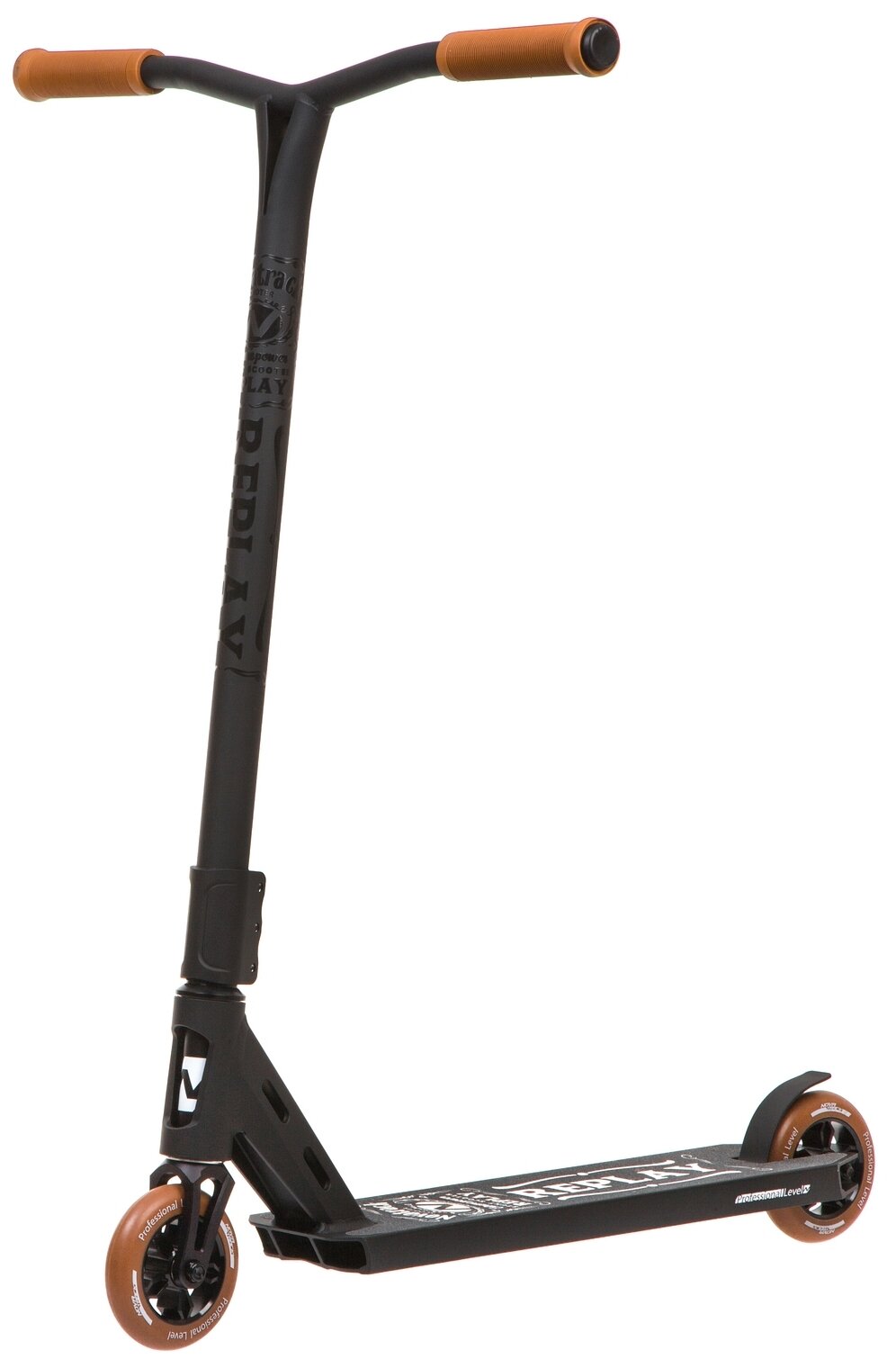Самокат трюковый NOVATRACK REPLAY, колеса 110 мм с алюмин ободом, фигурная рама, размер грипс 140мм со вставками из неохрома на конце, алюмин.кованная вилка, пром.подшипник, черный