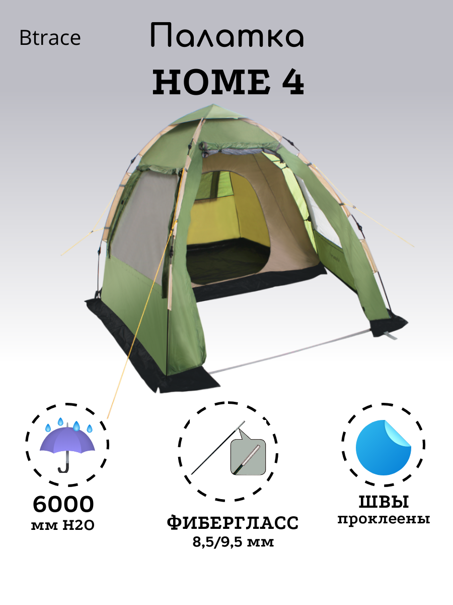 Палатка BTrace Home 4 быстросборная (зеленая) интересное: