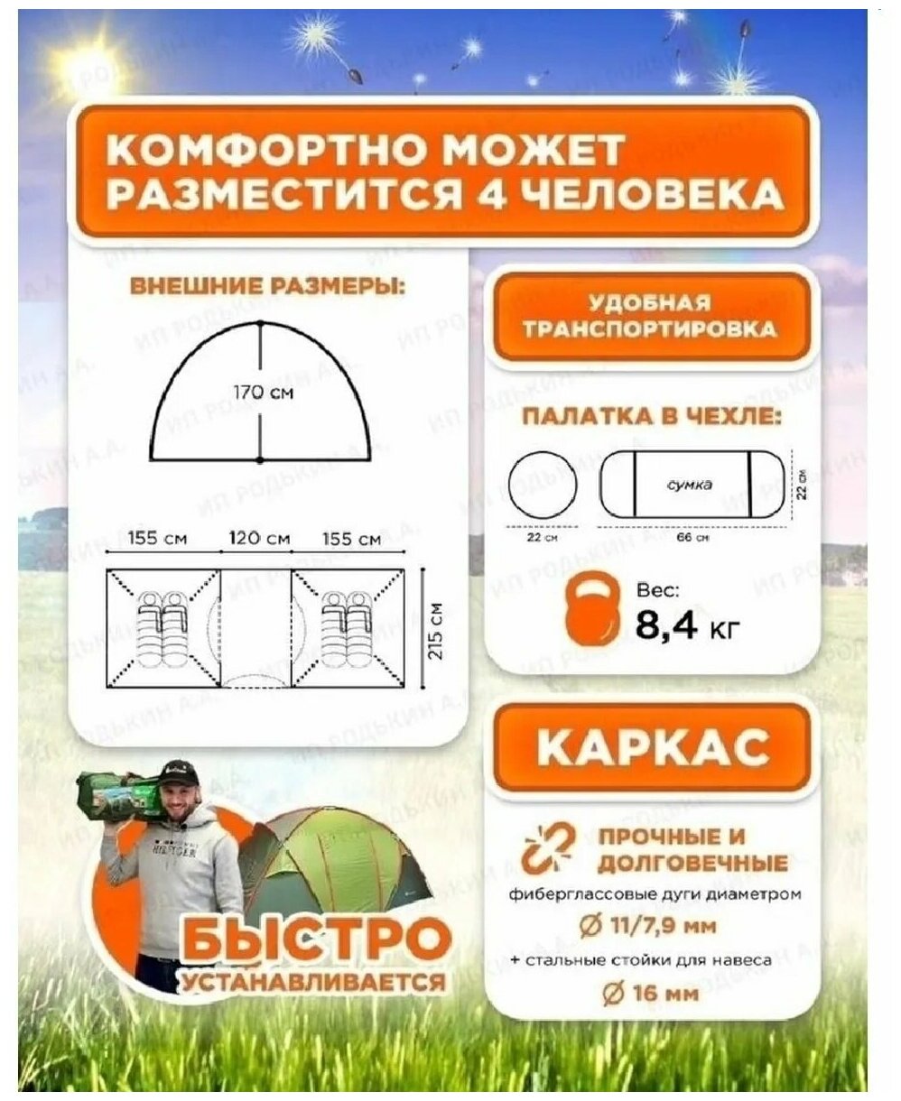 Четырехместная палатка Mir Camping ART 1002-4 интересное: