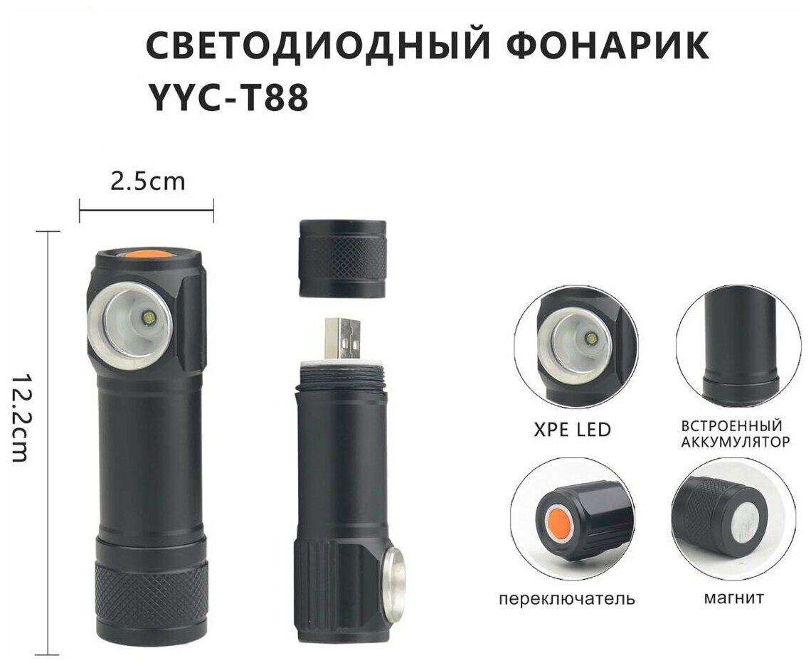 Фонарь налобный светодиодный аккумуляторный с зарядкой от USB T88 интересное: