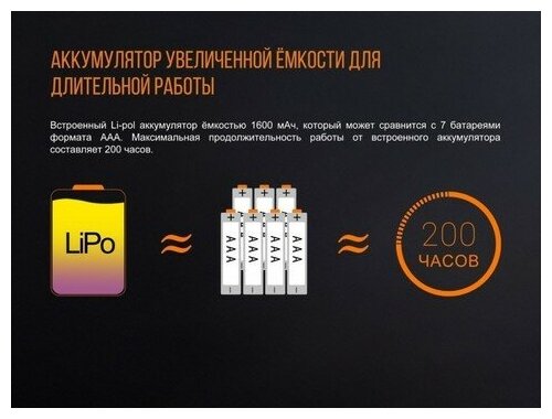 Фонарь светодиодный Fenix Cl20r оранжевый, 300 лм, встроенный аккумулятор CL20Ror .