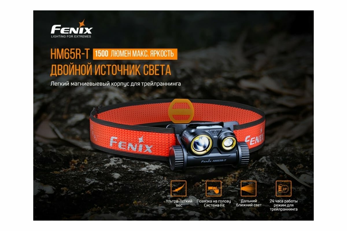 Фонарь налобный Fenix HM65R-T, 1500 лм